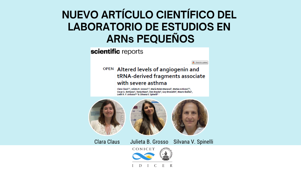 Cita del trabajo: Claus, C., Grosso, J. B., Maraval, M. B., Ardusso, M., Bottasso, O. A., Maes, T., Bracke, K., Brusselle, G., Ibañez, M., Ardusso, L. R. F., & Spinelli, S. V. (2025). Altered levels of angiogenin and tRNA-derived fragments associate with severe asthma. Scientific Reports, 15, 18808. https://doi.org/10.1038/s41598-025-03314-y